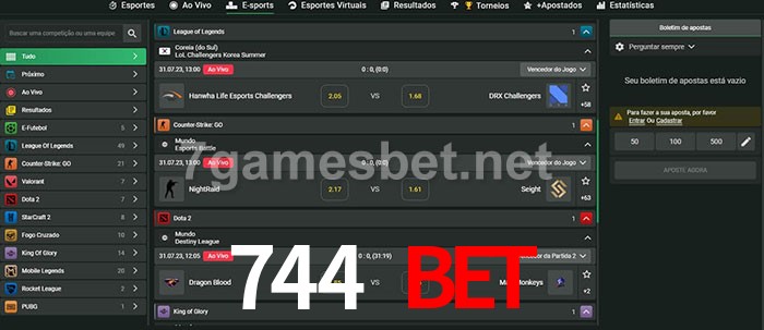 A aposta 744 bet oferece aos jogadores a experiência mais conveniente de apostas em eSports!